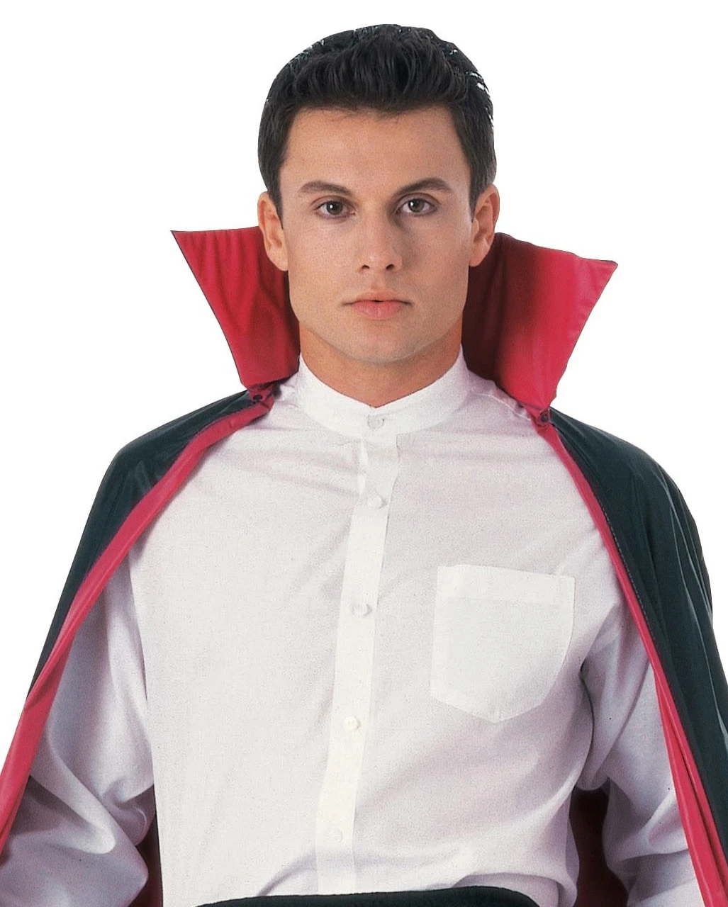 Mit unserem schwarz-roten Vampir Umhang wird dein Dracula Kostüm perfekt. Das Cape ist ein knielanger Umhang, der in den Farben schwarz und rot gehalten ist. Mit dem Wendeumhang kann jeder eingefleischte Vampir selbst entscheiden ob er die rote oder die schwarze Seite nach außen trägt. Um den klassischen Vorlagen aus Film und Fernsehen zu entsprechen, besitzt das Cape einen stabilen Stehkragen. Kombiniere dein Dracula Kostüm mit unseren Halloween-Vampirzähne.