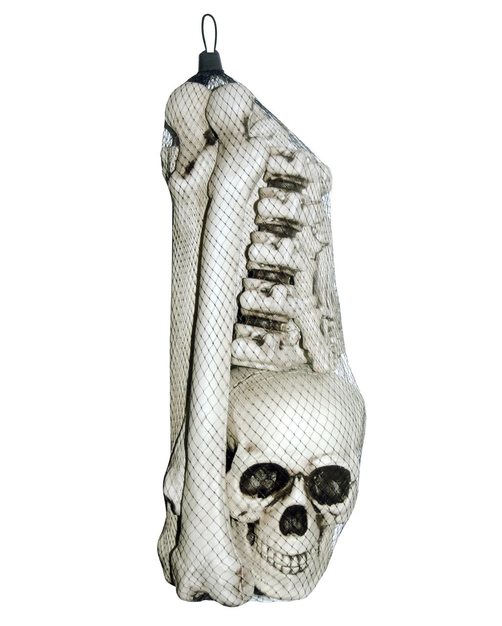 Dieses Knochen Set 12teilig ist ein Netz voll menschlicher Knochen, die einzeln als Halloween Dekoration verwendet werden können. Die Kunststoff Skelettteile wirken durch die Färbungen sehr realistisch und bieten ein extremes Grusel Feeling auf Halloween Events und Horror Parties.