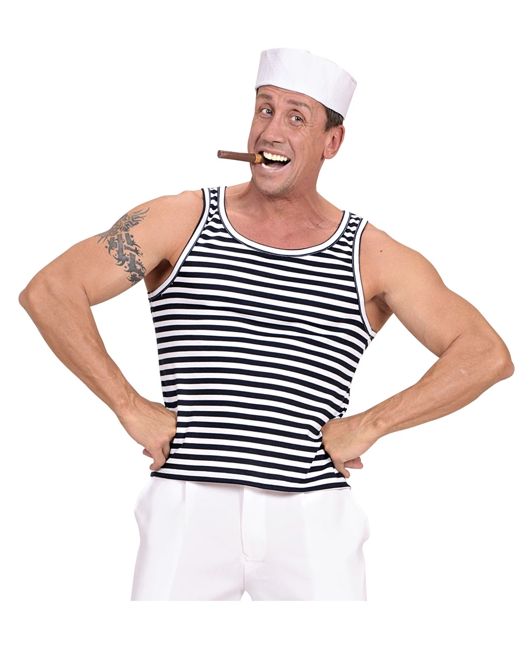 Spätestens seitdem ein bekannter französischer Modeschöpfer mit dem Motiv des Matrosen Kostüm mit Mütze Premium für seine Duftkreation warb ist dieser Kostümklassiker eine immer wieder gefragte Verkleidung.