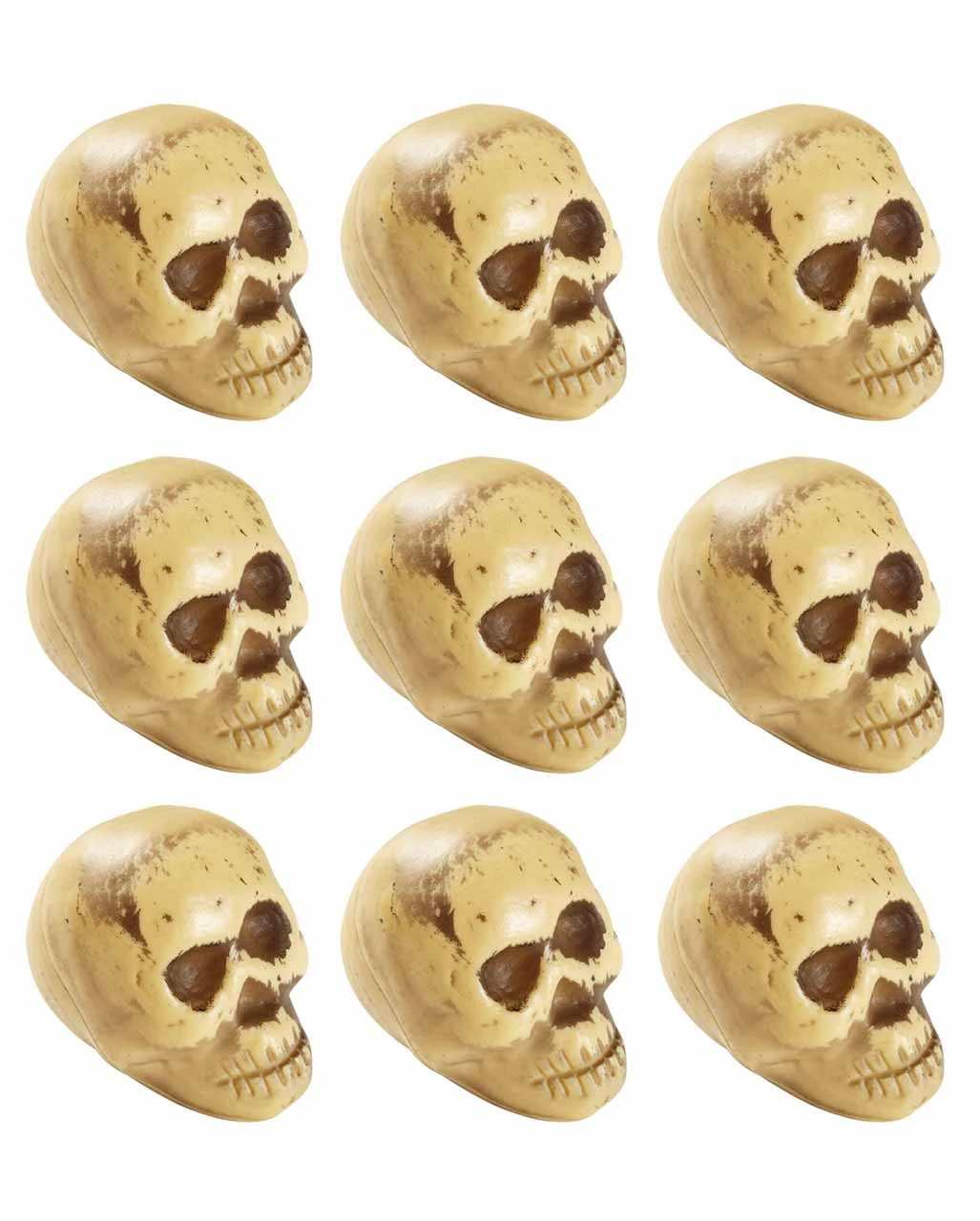 Bestelle dir jetzt das Grusel-Set mit neun kleinen Mini Totenköpfen. Die kleinen Totenschädel eignen sich perfekt für deine Halloween Tischdekoration oder als Mitbringsel zu einer Halloween Party. Die kleinen Mini Skulls warten nur darauf von dir als Halloween-Dekoration verwendet zu werden.