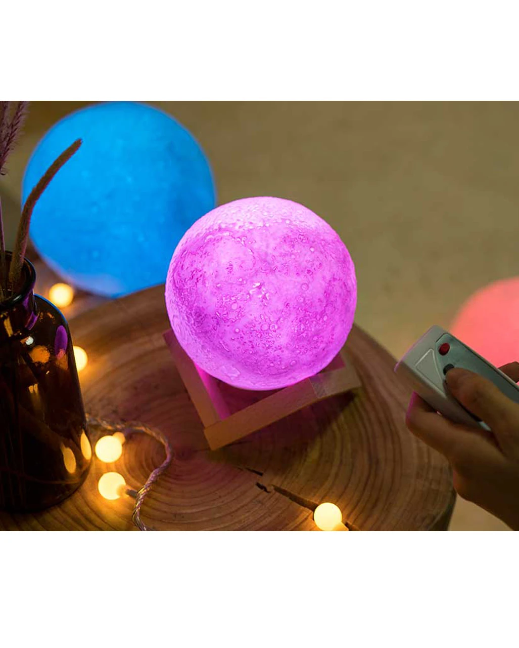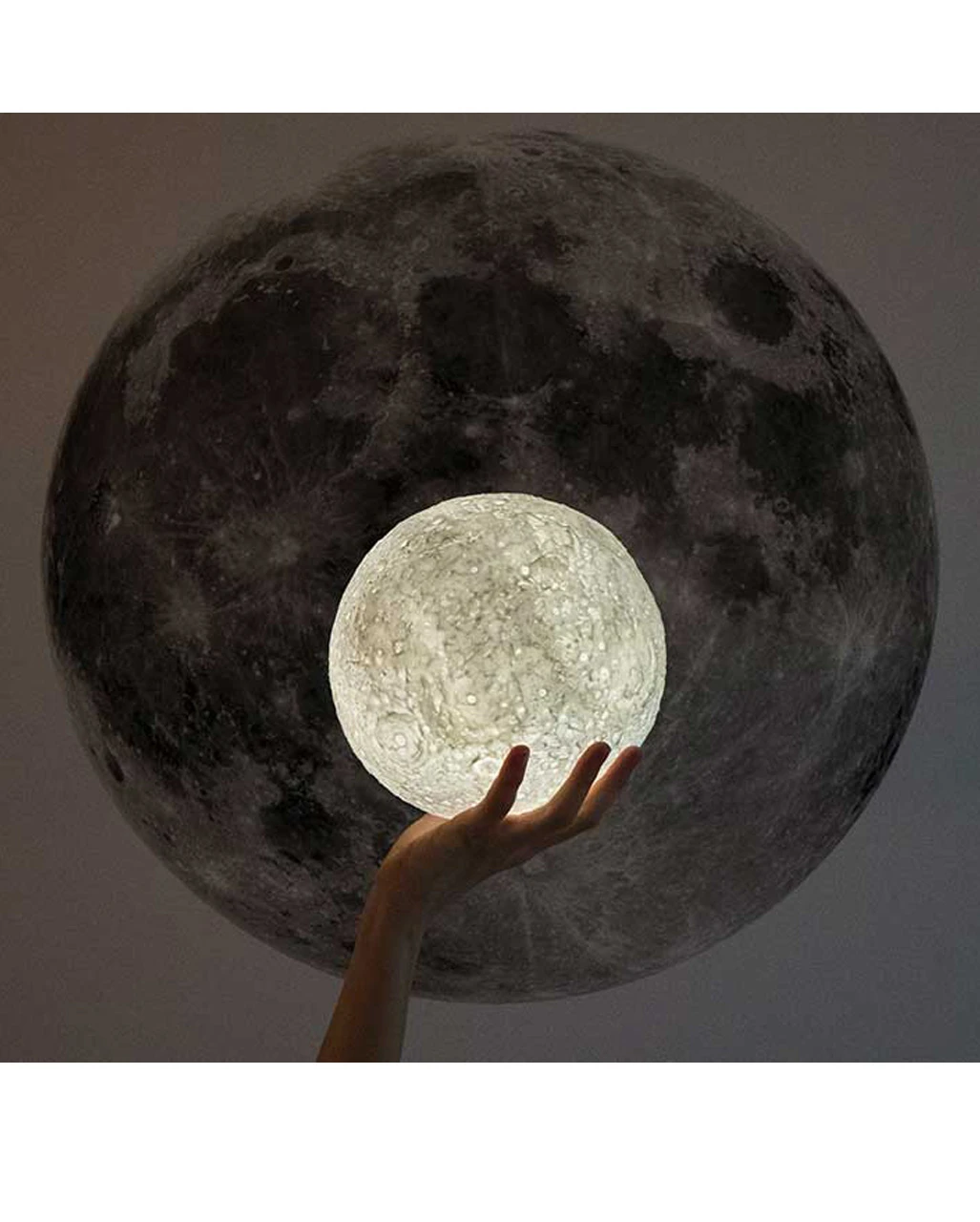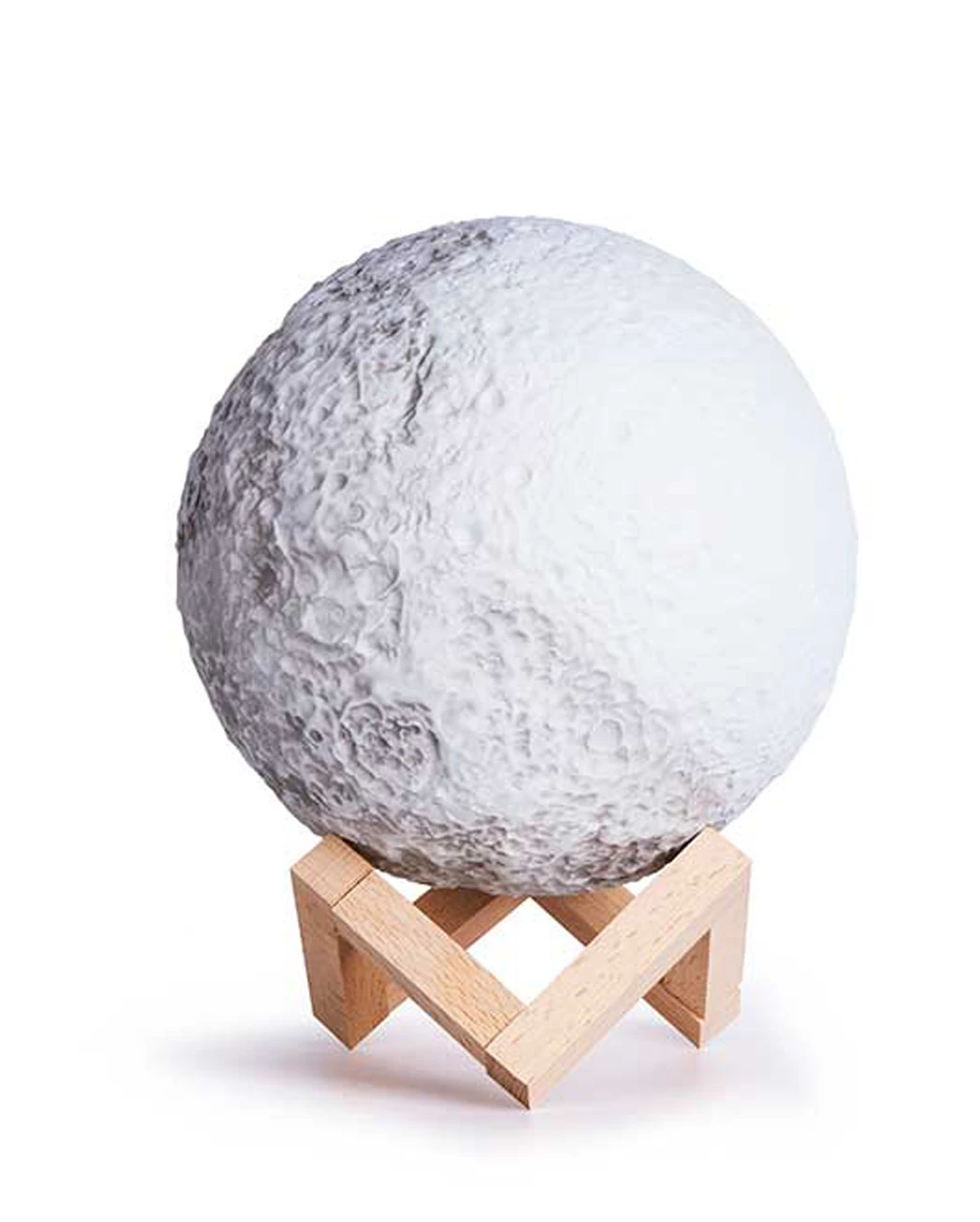 Der Mond als Wohnaccessoire ist ein Nachtlicht, das eine 1:1 Nachbildung des Mondes ist. Die Krater sind dank der integrierten Beleuchtung besonders realistisch dargestellt. Unsere Moon Lamp kommt mit einem dekorativen Holzständer und lässt sich nahezu an jedem Ort platzieren. Mit der Fernbedienung kannst du wahlweise einen sanften Farbwechsel, Schlummerfunktion und zahlreiche Leucht-Modi einstellen. Insgesamt können 7 Farbtöne sowie verschiedene Weiß-Nuancen eingestellt werden. Die Mondlampe verfügt über einen integrierten 1.200mAh Akku, inkl. USB Ladekabel.