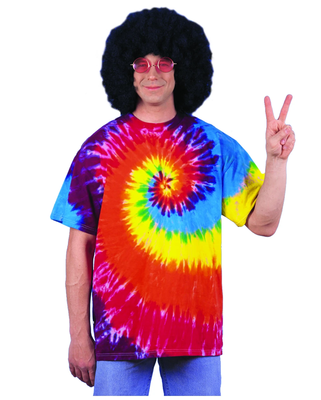 Mit dem Hippie Outfit fühlt geradezu den Zeitgeist der Blumenkinder und die Unbeschwertheit der damaligen Generation Love, Peace and Happienes. Das Rainbow Hippie Shirt ist one Size und passt Männern und Frauen mit der Größe ML. Kombiniere das schrille Hippie Shirt doch mit einem unserer Afroperücken und dem auffälligem Peace Zeichen als Schmuck und Woodstock kann kommen!