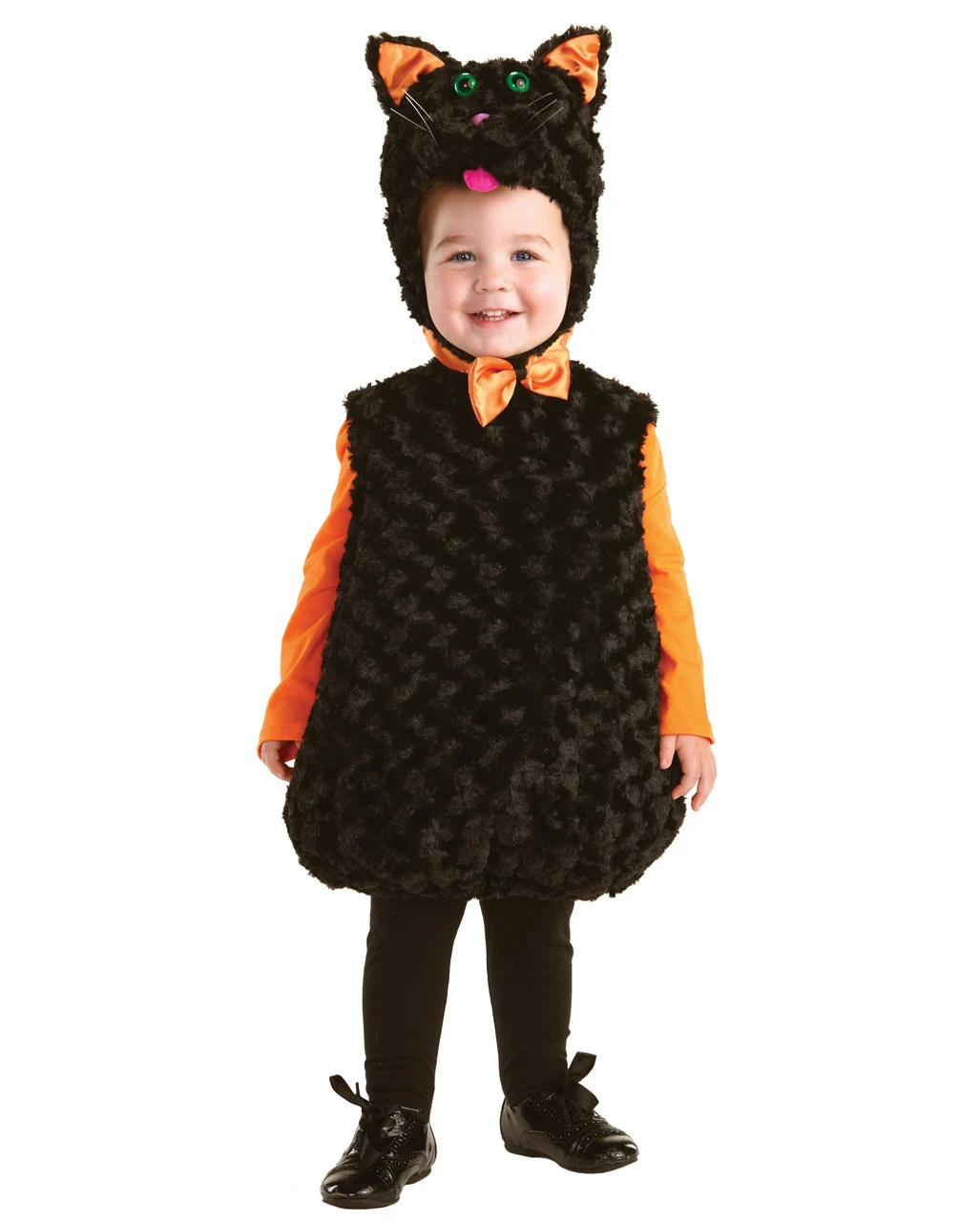 Das goldige Katzenkostüm für Babys besteht aus zwei Teilen. Ein schwarzes kurzärmliges Plüschkostüm. Am Ballorock ist ein praktisches Gummiband befestigt. Die Katzenmütze ist mit einem nützlichen Klettverschluß vernäht. Am Oberkopf der Plüschhaube sind putzige Katzenohren und ein verspieltes Katzengesicht angebracht.