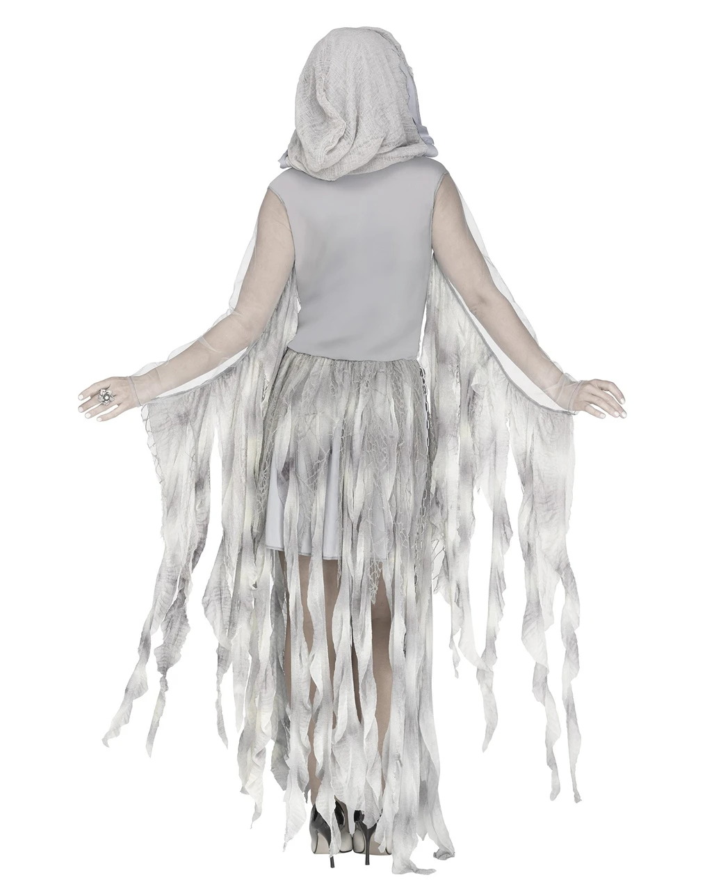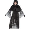 Das verzauberte Geisterbraut Damenkostüm ist in den Größen S/M und M/L erhältlich. Es besteht aus weichem, leicht transparentem Stoff. Der graue Fetzenumhang erinnert an ein zerrissenes Brautkleid. Eine befestigte Kette sowie Spinnweben Applikationen sorgen für einen tollen Blickfang. Das Halloween Brautkleid für Damen hat außerdem eine Kapuze. Die passende Perücke kannst du dir mit Todesfürstin Lockenperücke grau dazu kaufen um den Look perfekt zu machen.